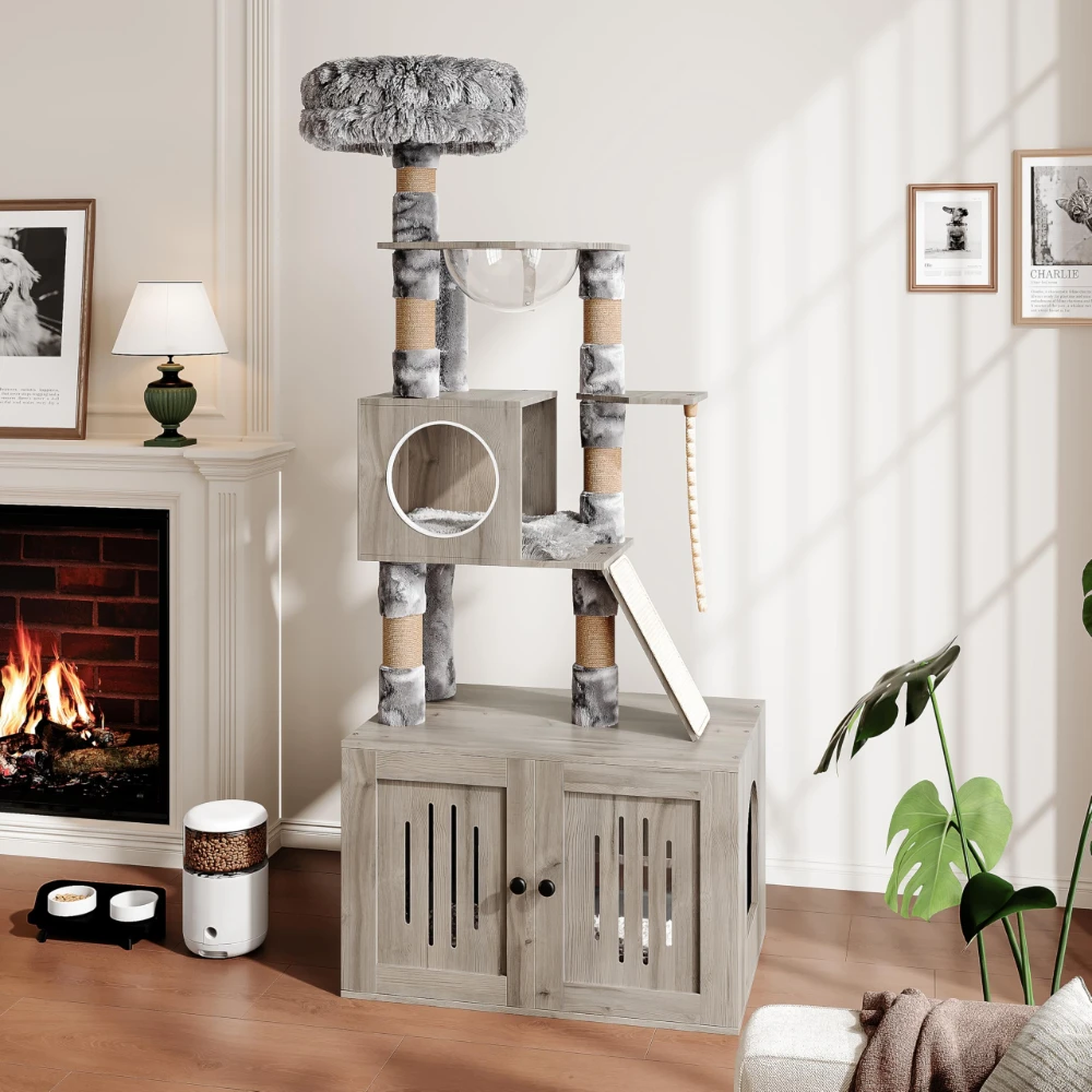 - Litter Box Enclosure Cat Tree: Multi-Layer Sisal Cat Tower