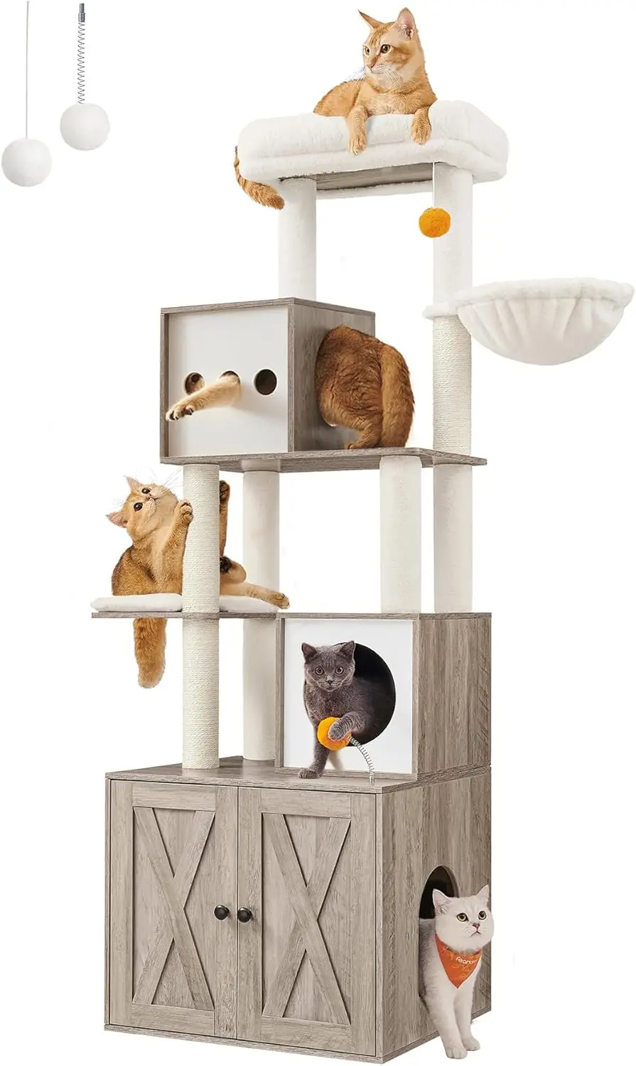 Cat Tree with Litter Box Enclosure, 2-in-1 Modern Cat Tower, 70.8-Inch Tall Cat Condo with Scratching Posts, Perch, Caves