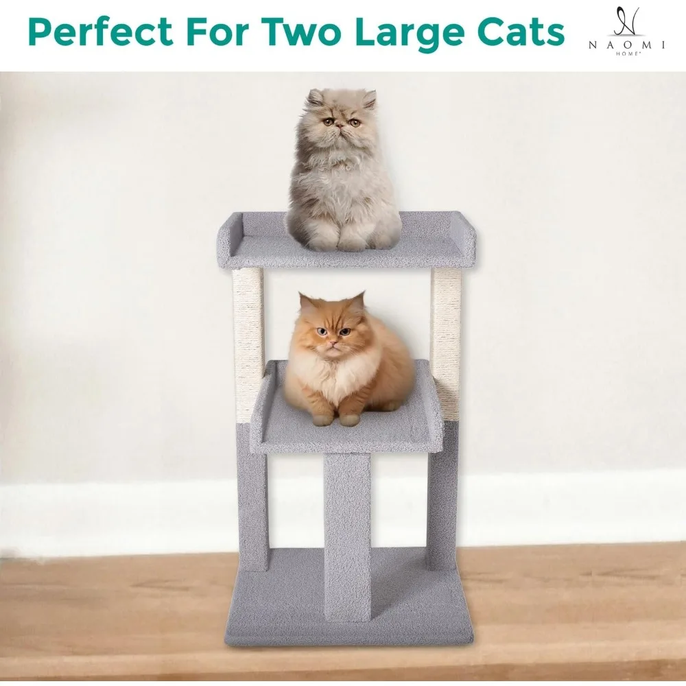 Home 2-Tier Gray Cat Tree Tower for Large Cats – Sturdy & Stable Cat Condo with Sisal Scratching Posts, Compact Vertica lDesign