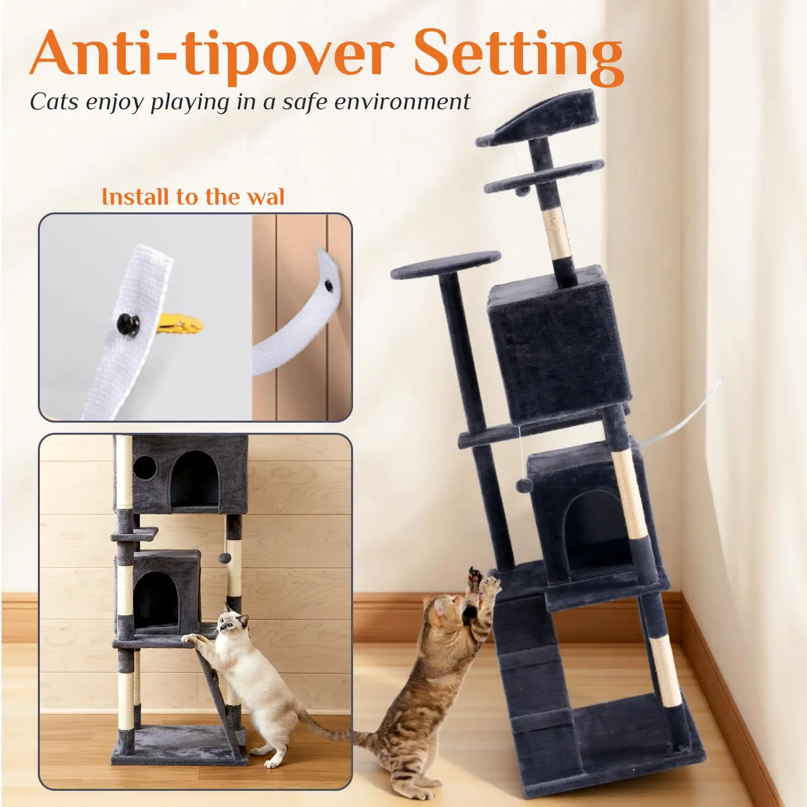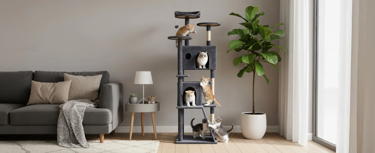 Practical and Beautiful: Cat houses are not only practical, but also full of beauty. It meets the cat's multiple needs: sleeping, relaxing and playing. Whether placed in the living room, bedroom or balcony, cat tree with scratching post is very suitable.