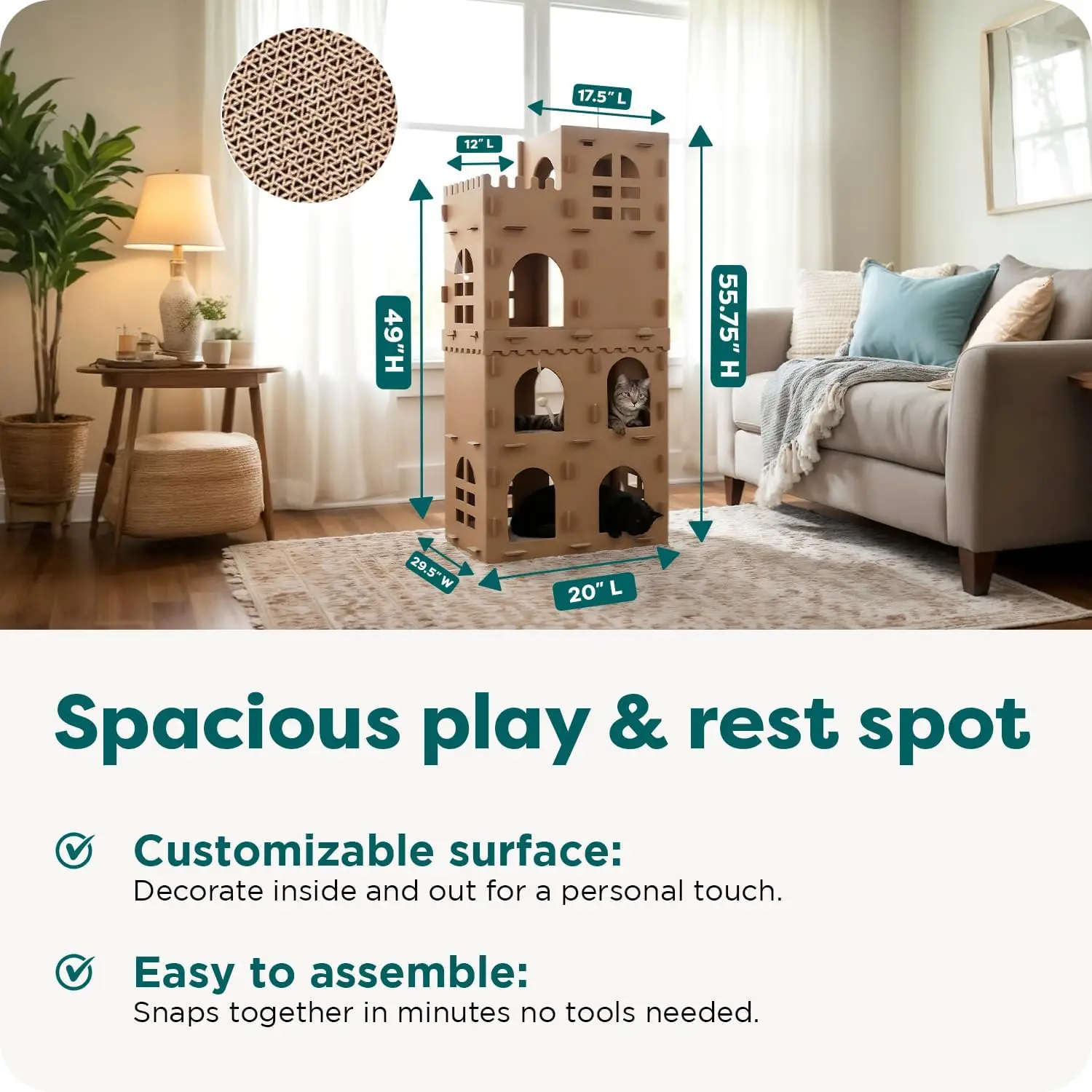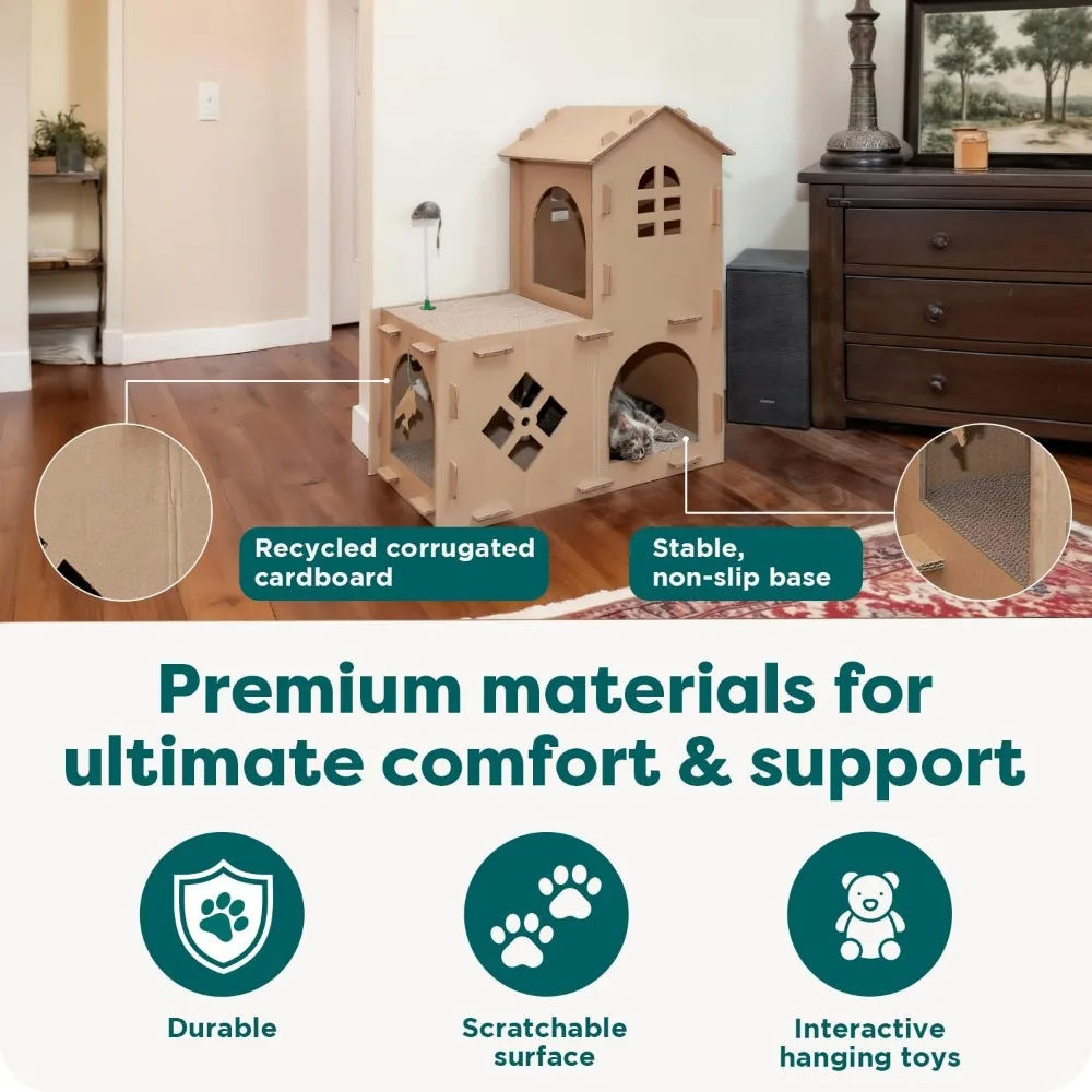 Multi-Level Cardboard Cat House with Catnip & Toys, Double-Walled Scratcher for Lounging, Play & Comfort, Brown