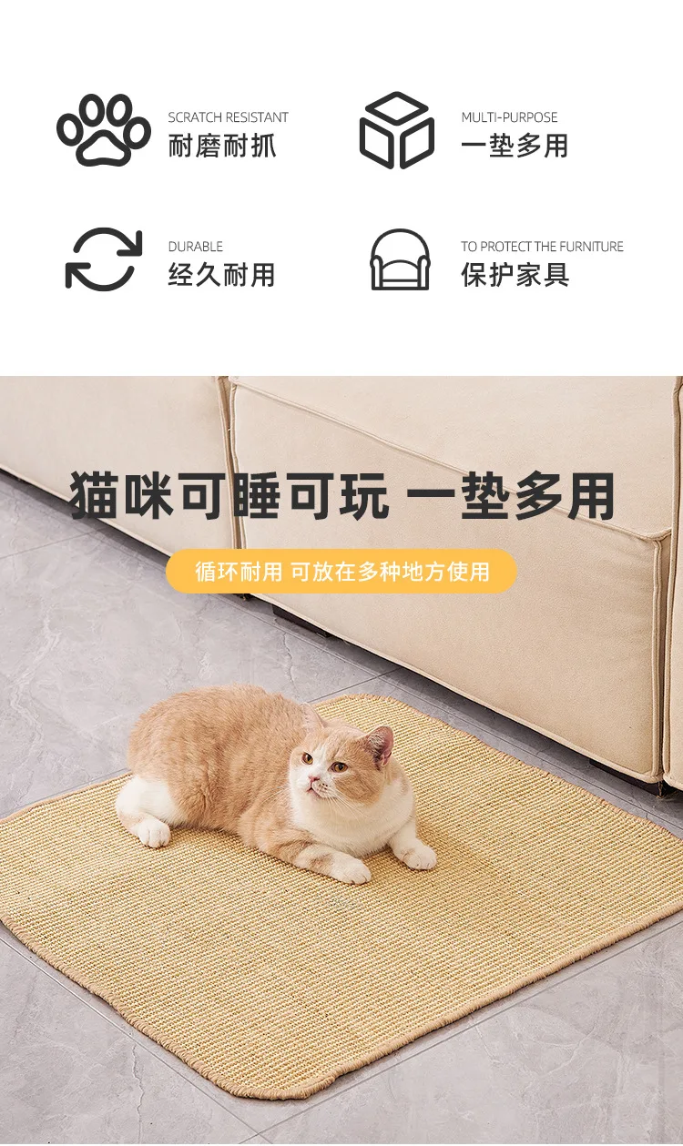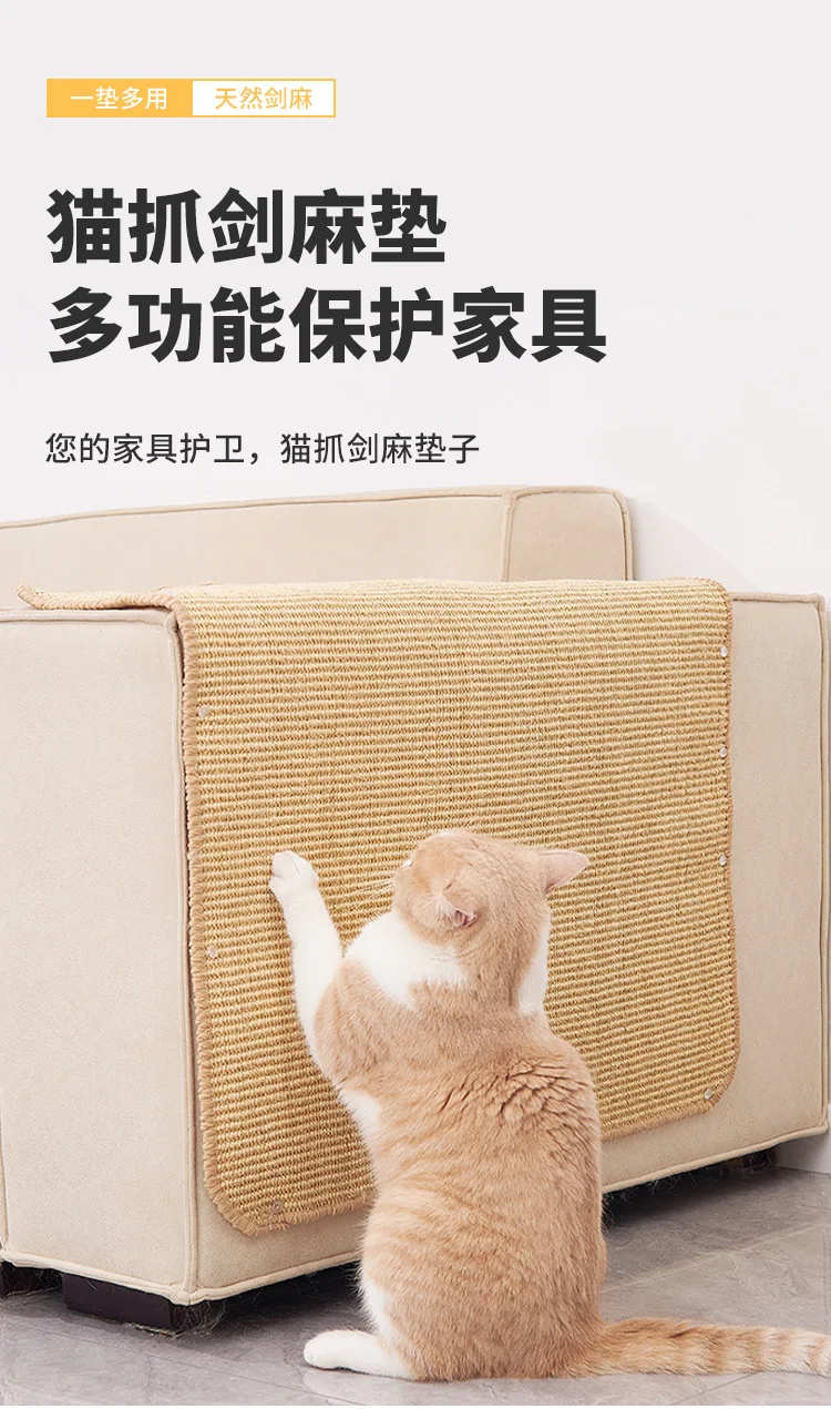 Sisal Hemp Cat Scratching Board Wall-Mounted Natural Fiber Furniture Protector Eco-Friendly Claw Training Post Indoor Cats Pad